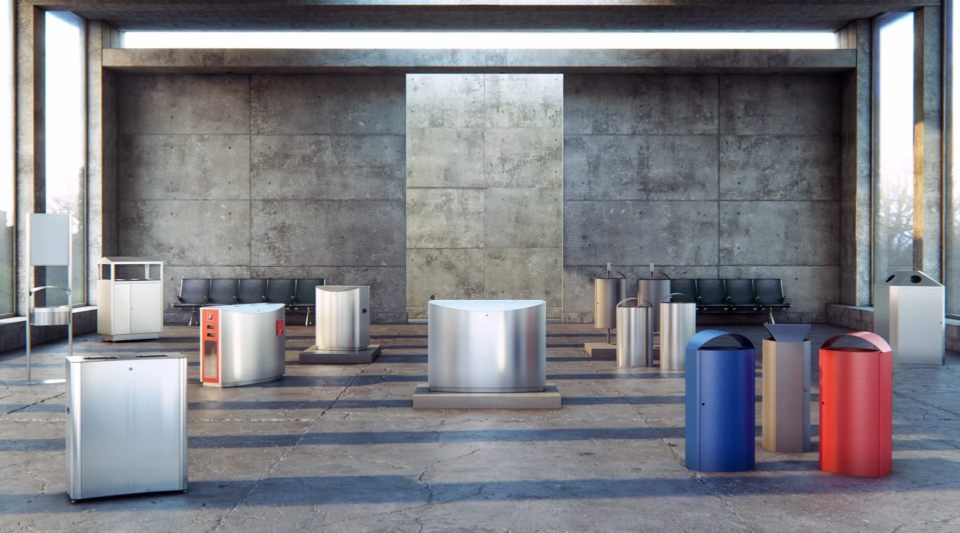 Unsere Behälter aus hochwertigem Edelstahl und pulverbeschichtetem Stahlblech vereinen funktionales Design mit kompromissloser Sicherheit (Brand- und Vandalismusschutz).